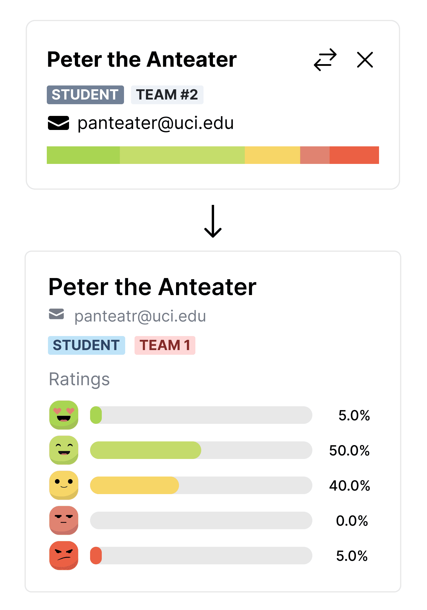 Student cards were redesigned to maximize the amount of information shown to instructors.