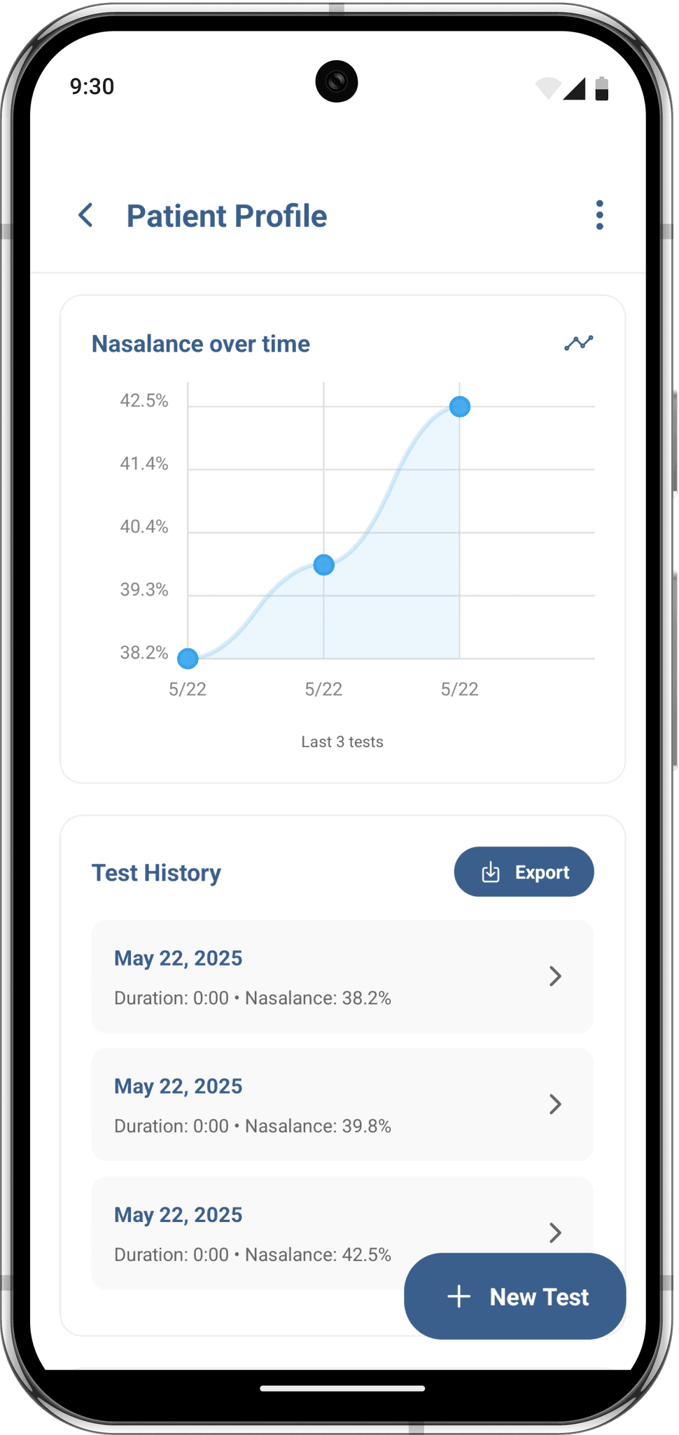 Clear, actionable results: Provides a nasalance score instantly after recording with compatible hardware, and allows easy comparison among past tests through a graph or CSV export.